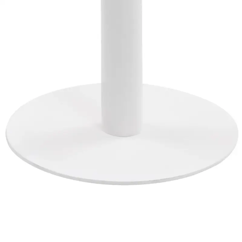 Het tafelblad is gemaakt van MDF met houtnerfpatroon en wordt ondersteund door een stalen poot en basis. Hij is gemakkelijk schoon te maken met een vochtige doek. Gebruik de tafel als aanvulling op je interieur, restaurant, koffiebar of lunchroom.