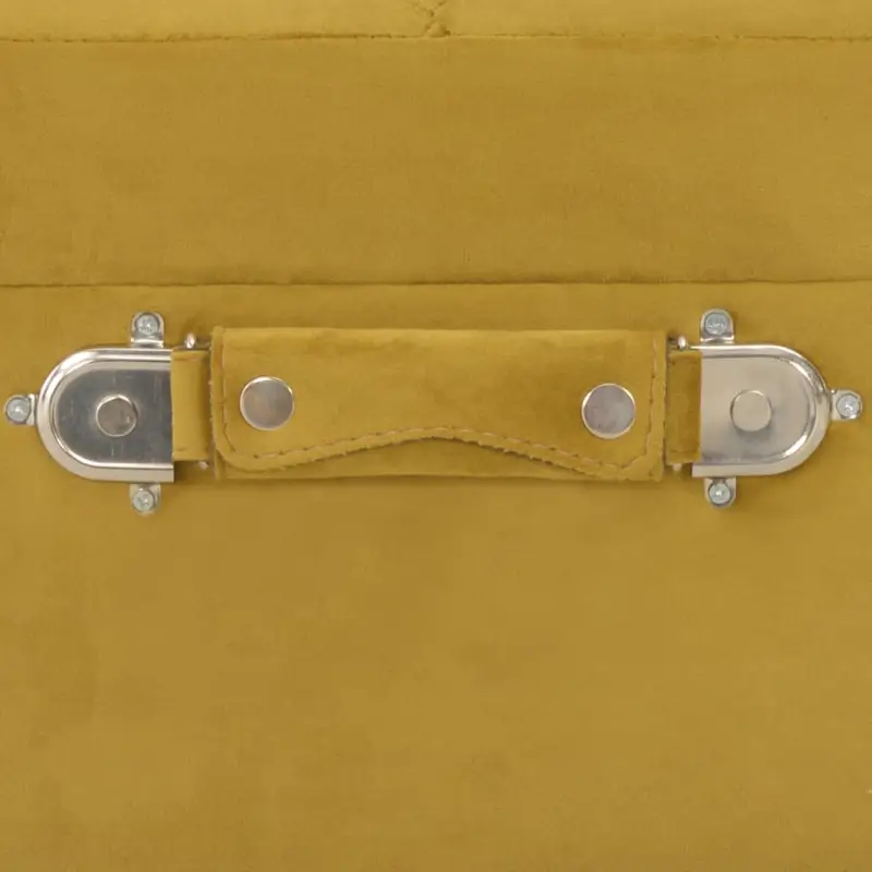 Deze hocker is bekleed met fluweel en gevoerd met schuim voor extra comfort. De massief houten poten maken de hocker stabiel en duurzaam en geven hem een elegante charme. Hij beschikt over een opbergvak onder de zitting voor extra opbergruimte.