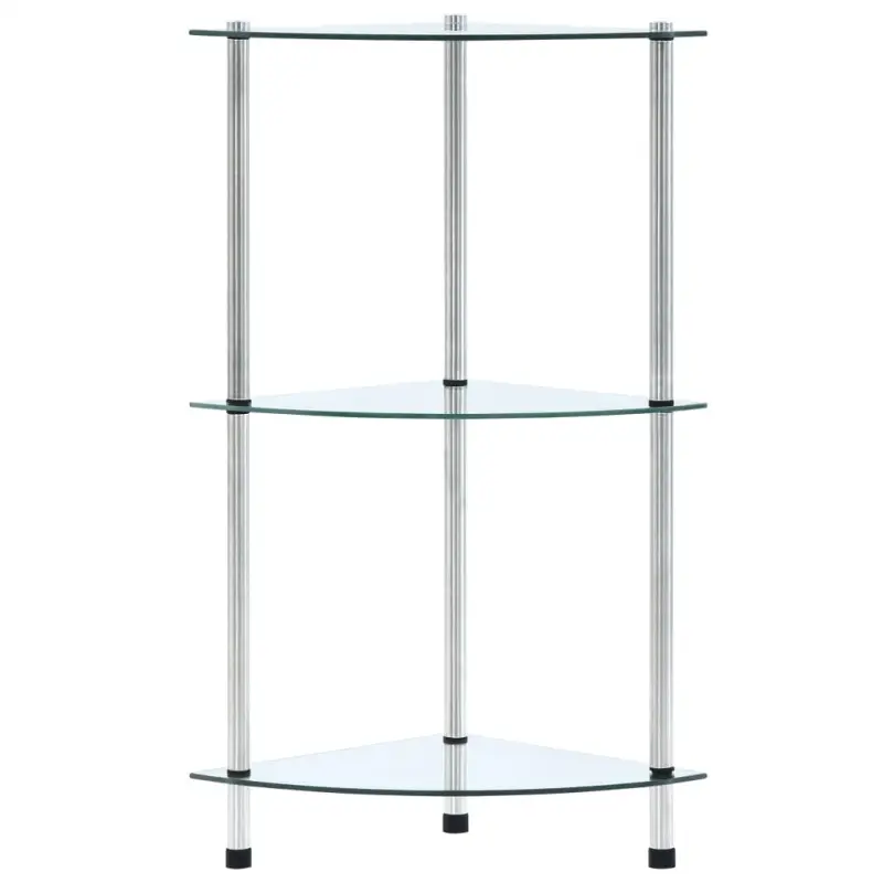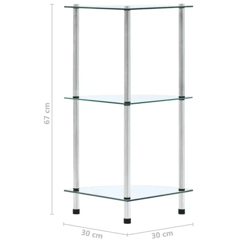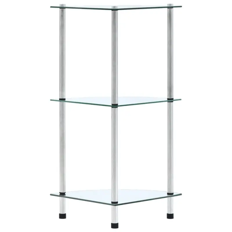 De vitrinekast is ontworpen met drie lagen voor voldoende opbergruimte. Je kunt het multifunctionele kastje in de woonkamer of op kantoor gebruiken om je verzamelobjecten, fotolijsten, potplanten te tonen, of in de badkamer om je benodigdheden georganiseerd te houden. Het is gemaakt van dik, gehard glas en robuust, duurzaam roestvrij staal. Dit meubel is buitengewoon stevig en veilig. Bovendien is het gladde oppervlak eenvoudig te reinigen met een vochtige doek. Het is eenvoudig te monteren.