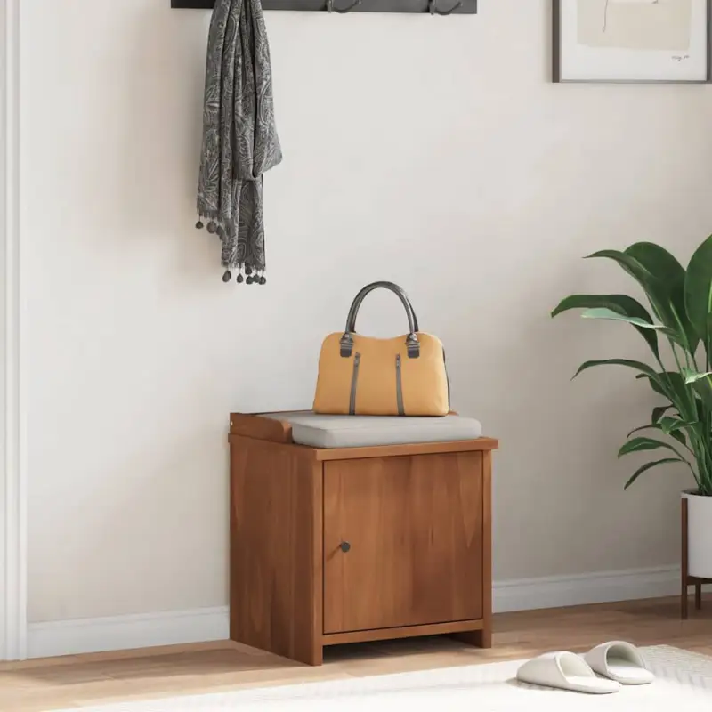 - Multifunctionele halbank: deze veelzijdige bank doet ook dienst als opbergkast voor schoenen en accessoires, terwijl hij ook een handige plek biedt om te zitten bij het aan- of uittrekken van schoenen in de gang.
