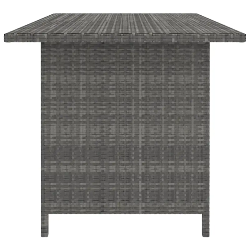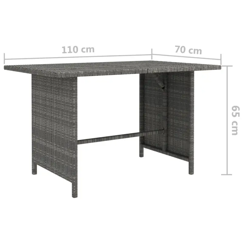 De tafel is gemaakt van waterbestendig PE-rattan, waardoor hij gemakkelijk schoon te maken en geschikt voor dagelijks gebruik is. Het gepoedercoat stalen frame maakt de tafel extra stabiel. Dankzij de lichtgewicht constructie is de tuintafel gemakkelijk te verplaatsen.