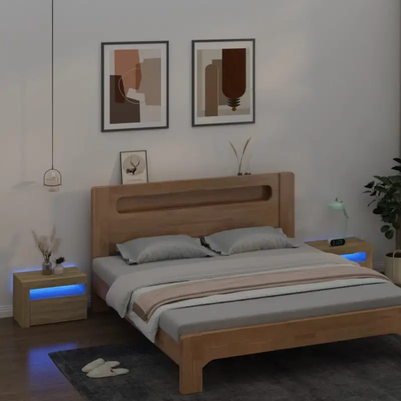- RGB LED-verlichting: deze nachtkastjes beschikken over RGB LED-verlichting die verschillende standen heeft. Je kunt de kleur van de verlichting veranderen en de kleur kan zich automatisch aanpassen. De LED-lampjes onderstrepen het moderne uiterlijk en dragen bij aan een trendy gevoel.