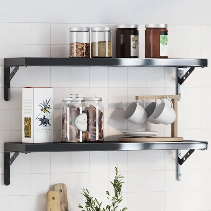 - Stevig materiaal: deze plankdrager is gemaakt van roestvrijstaal, waardoor hij duurzaam en corrosiebestendig is en lang meegaat.
