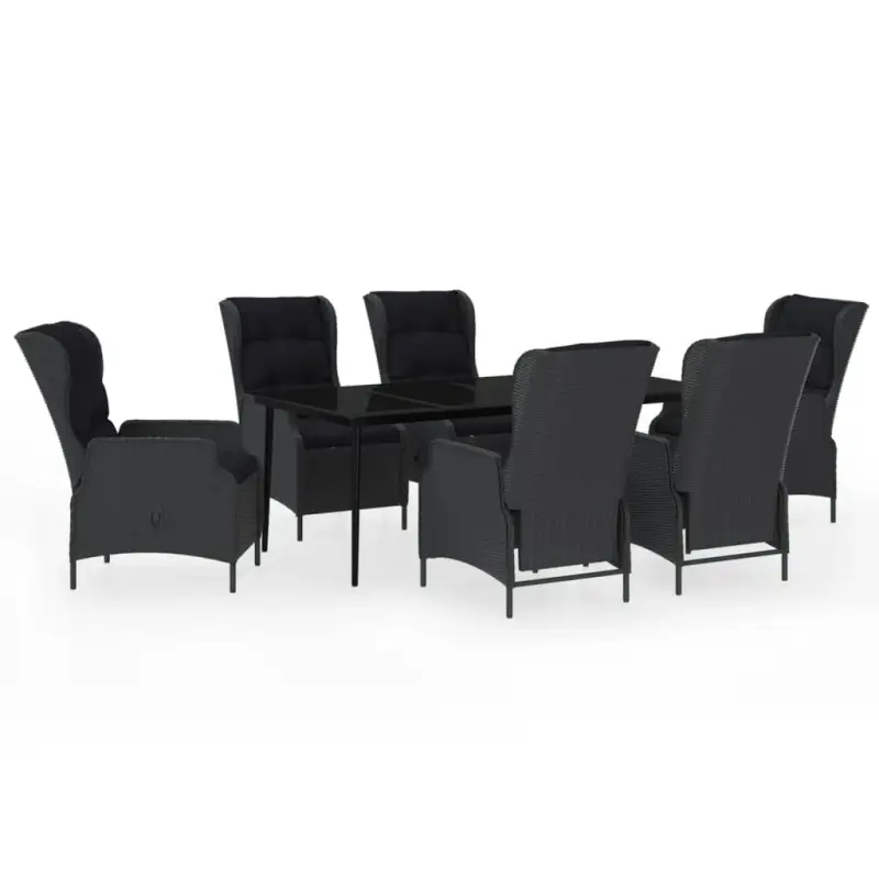 De praktische tuinset heeft een stalen frame, waardoor hij sterk en stevig is. De tuinstoelen zijn gemaakt van waterafstotend en onderhoudsvrij PE-rattan, waardoor ze perfect zijn voor in de tuin. De dik gevoerde kussens zorgen voor extra comfort tijdens het eten. De kussenhoes is voorzien van een ritssluiting, hij is afneembaar en te wassen. Dankzij het gasveermechanisme is ook de rugleuning naar wens verstelbaar. Middels de knop aan de zijkant kan de rugleuning naar achteren versteld worden, voor een comfortabele positie. Daarnaast is het vlakke, glazen tafelblad makkelijk schoon te maken met een vochtige doek en zeer geschikt voor het plaatsen van maaltijden, drankjes en andere decoratieve spullen.
