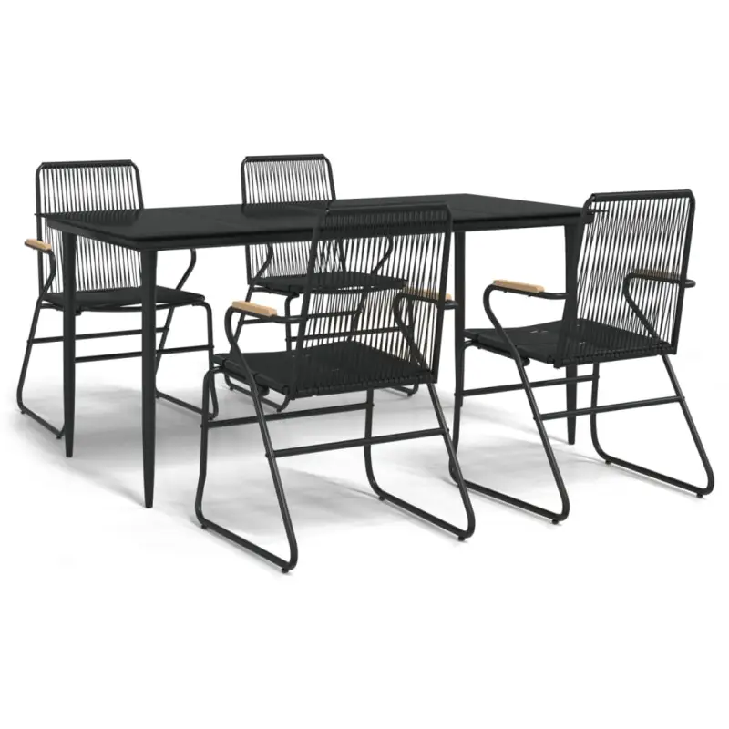- Materiaal: PVC-rattan, gepoedercoat staal en massief teakhout